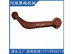 连杆:一般为弯臂连杆,两端装有两个调心滚子轴承。一端通过轴承与曲柄上的短轴连接,另一端与轴架上的短轴连接,在曲柄带动下进行往复运动,将曲柄的旋转运动转化为直线往复运动。